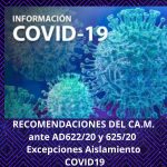 AD622/20 y 625/20 Excepciones Aislamiento Recomendaciones del CAM