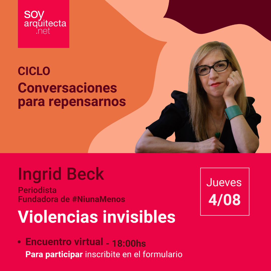 Compartimos invitacion, de soyarquitecta.net a participar y difundir entre la matrícula la primera charla del Ciclo “Conversaciones para repensarnos” con Ingrid Beck, periodista y fundadora de #NiUnaMenos. Hablaremos sobre Violencias Invisibles, una problemática que nos afecta a todas/os especialmente en el ámbito laboral.
