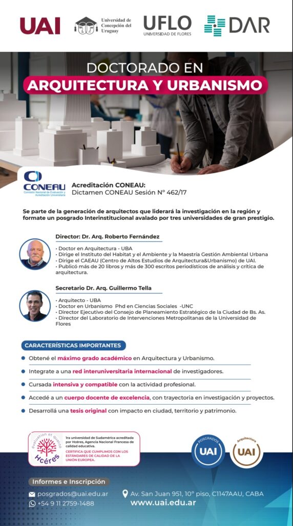 Doctorado en ARQUITECTURA Y URBANISMO Cohorte 2026-2027 23/09/2025 Comunicación No comments No comments View Fullscreen