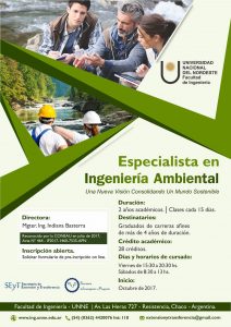 Especialista en Ingeniería Ambiental -UNNE – Fac. Ingeniería